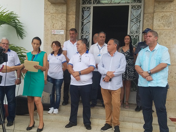 Al referirse a la sede dijo: “un colectivo que con el de cursar del tiempo ha perfeccionado su labor, cohesionando el trabajo con las diferentes agencias y elevando la calidad de los servicios. Exponentes de profesionalidad y comprometidos con la salvaguarda de los bienes del Estado, sin reparos para ocupar el lugar donde los necesiten”.
