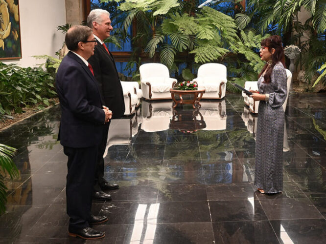 Miguel Díaz-Canel, Presidente de Cuba, encabezó en el Palacio de la Revolución la ceremonia de presentación de cartas credenciales que acredita el desempeño de seis nuevos embajadores extraordinarios y plenipotenciarios.