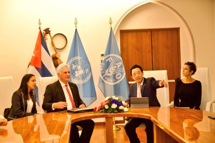 Según indica la Cancillería de Cuba en la misma red social, el jefe de Estado reiteró el agradecimiento por el apoyo de la FAO ante situaciones complicadas como la COVID-19 y el paso del huracán Ian.