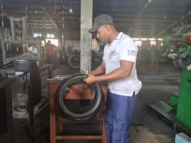 Además del recape de neumáticos Poligón Santiago incursiona en la comercialización de producciones alternativas vinculadas a la industria química. (Foto: Arleen Labañino)