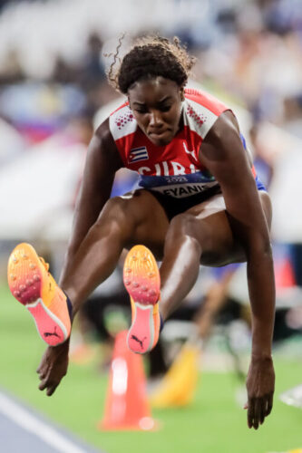 En el salto largo Leyanis Pérez clavó los pinchos en 6 metros y 65 centímetros, solo superada por la colombiana Natalia Linares con 6.86.