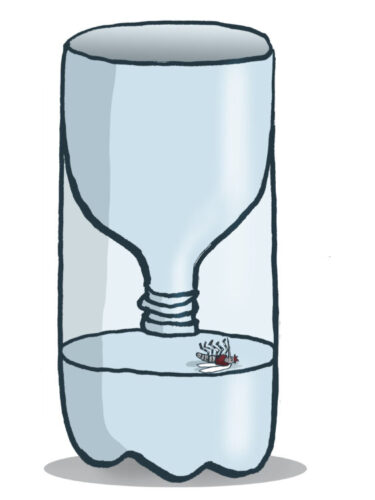 Corte la parte superior de un pomo plástico e insértela al revés en el propio envase para que el insecto entre y no halle la salida. Cubra la porción inferior para que esté oscura.