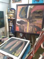 —Efectivamente. Me he dado cuenta que con muchas horas dentro del estudio corres el riesgo de repetirte, repetir la forma, repetir el color, se te puede volver en una cocina, en una receta, y necesito buscar otro espacio para después colocarme en toda la parte experimental dentro de mi arte, combinar lo mismo el grabado, la pintura, el dibujo, he sentido por momentos el deseo de hacer un dibujo académico a partir de un soporte como el papel Graf, el carboncillo, la tiza, una crayola pastel. Yo creo que un artista no es precisamente un pintor, un pintor es alguien que pinta y puede tener cierto oficio en la pintura, pero un artista es algo más amplio, es buscar dentro de la historia del arte todo los referentes que te interesen para poder reflejarlos en tu obra y poder proyectarte hacia el futuro.