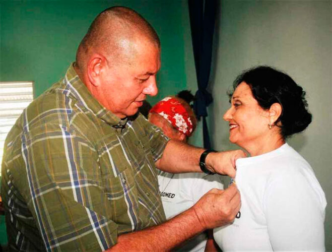 Rodríguez Fernández dio lectura a la Resolución que acredita la entrega de la distinción Juan Tomás Roig, que premia la labor destacada e ininterrumpida en el sector de la Salud por 20 y más años, de la que se hicieron merecedoras cuatro representantes del colectivo, quienes aseguraron que en ese estímulo va el reconocimiento a todos sus compañeros.