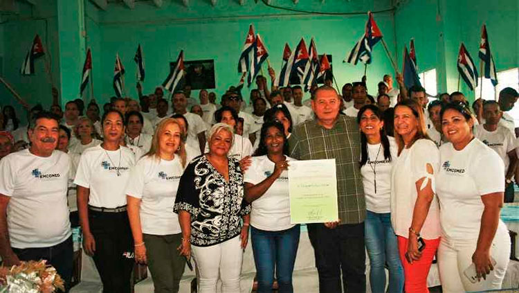 Y, para entregar y compartir la alegría por el alto estímulo con los trabajadores, hasta la sede del centro llegaron el miembro del Comité Central y primer secretario del Partido en la provincia, Manuel Pérez Gallego; la secretaria general de la CTC en el territorio, Odalis Batista Pérez; la secretaria general del Comité Provincial del Sindicato de la Salud, Karianna Pérez Hernández; y, el representante sindical de Emcomed, Pedro Rodríguez Fernández.