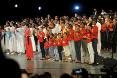Con la presencia de Miguel Díaz-Canel Bermúdez, Primer Secretario del Partido Comunista de Cuba (PCC) y Presidente de la República, se desarrolla el espectáculo cultural en la sala principal del Teatro Heredia, en Santiago de Cuba, dedicado al aniversario 70 del asalto a los cuarteles Moncada y Carlos Manuel de Céspedes.