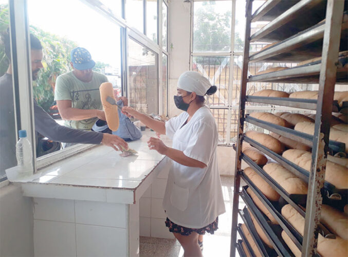 “Comenzamos a procesar a las once de la mañana, se continúa hasta las once de la noche. En los horarios picos se detienen los equipos, el pan se mantiene caliente en la estufa, además se siguen vendiendo otras producciones alternativas como sal, bijol, puré de tomate”, explicó Dianet.
