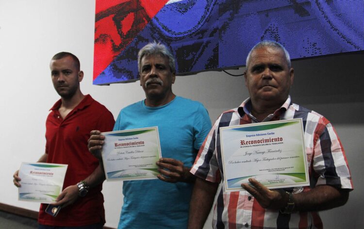 El acto, sencillo y solemne, fue realizado en el teatro de la Industria Deportiva, en La Habana y sirvió para homenajear al colectivo de trabajadores de Ediciones Caribe, en especial a los 80 acreedores de la distinción José Ramón Martínez, mártir del sector de la industria ligera cubana.
