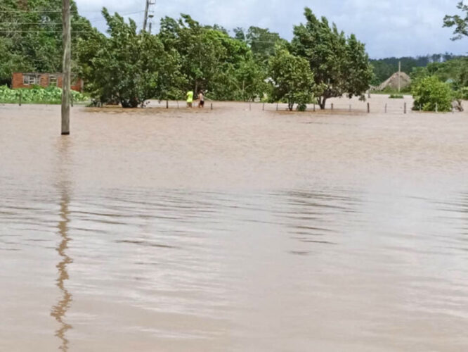 En la comunidad Mangos de Roque la crecida del río Mantua bordeó varias viviendas e inundó a otras. (Foto de Pedro Paredes Hernández)