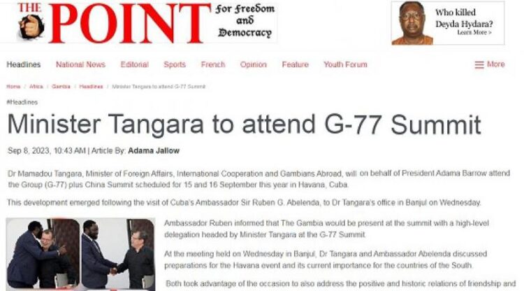 En sus ediciones impresa y digital, y con llamado a portada en el caso de The Standard, los cotidianos subrayan que la asistencia de la comitiva de esta nación del occidente africano a la importante cita de La Habana fue confirmada por el propio Tangara, al recibir el miércoles al embajador de la isla caribeña aquí, Rubén G. Abelenda.