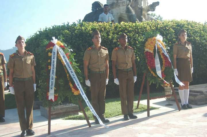 Allí ofrendas florales a título del General de Ejército Raúl Castro Ruz, y del Primer Secretario del Partido y Presidente de la República Miguel Mario Díaz-Canel Bermúdez devinieron homenaje al hombre sencillo, al albañil que desde 1953 se unió como soldado de fila a la lucha revolucionaria liderada por Fidel Castro Ruz, y a fuerza de coraje y talento se ubicó entre los grandes paradigmas de la última etapa por la independencia de Cuba.