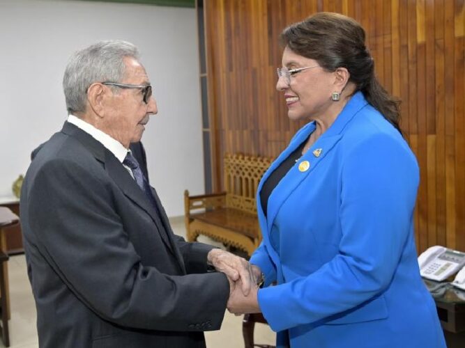 En el encuentro con la presidenta de la República de Honduras, Excma. Sra. Doña Iris Xiomara Castro Sarmiento, el compañero Raúl reiteró la disposición de seguir fortaleciendo las relaciones de amistad entre las dos naciones y de aprovechar las oportunidades existentes para incrementar los vínculos bilaterales en sectores de interés común.