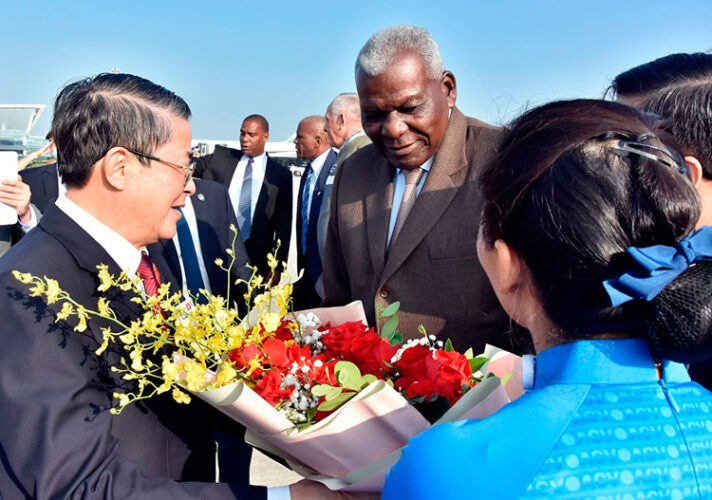 Durante el diálogo el también miembro del Buró Político del Partido Comunista de Cuba y presidente del Consejo de Estado manifestó sentirse emocionado con esta visita, que tiene lugar además en el contexto de la celebración de los 60 años de la constitución del Comité Cubano de Solidaridad con Vietnam del Sur.