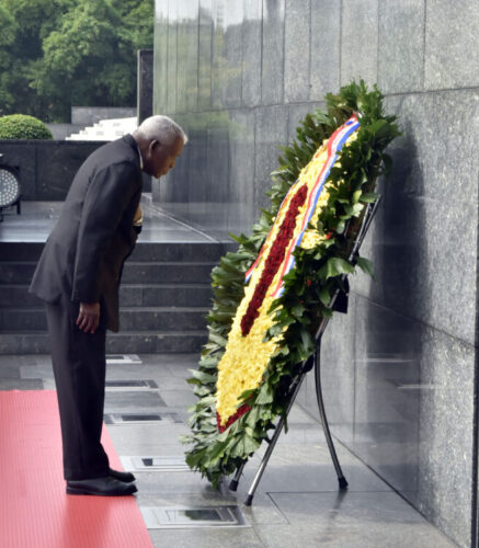 Por esta razón, a 50 años de aquella primera visita de Fidel, no podía ser otro el inicio de la jornada de la delegación cubana este 25 de septiembre, bien temprano en la mañana, que el homenaje a Ho Chi Minh en el Mausoleo erigido en su honor, en Hanói. Una ofrenda floral colocó el miembro del Buró Político del Comité Central del Partido Esteban Lazo Hernández, presidente de la Asamblea Nacional del Poder Popular y del Consejo de Estado, como tributo al entrañable patriota vietnamita, quien como manifestó Fidel, «pertenece a la singular estirpe de los hombres cuya muerte es simiente de vida y perenne irradiación de estímulos».