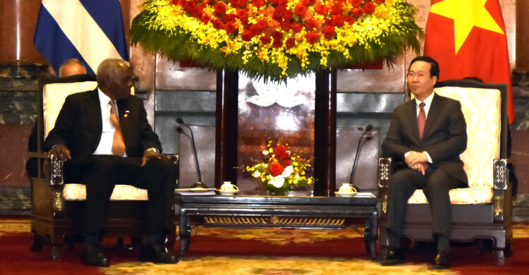 En el intercambio, el Presidente del Consejo de Estado refirió también que para Cuba las relaciones con Vietnam, tienen carácter estratégico, en particular los vínculos económicos, comerciales y de cooperación; y la voluntad de continuar fortaleciéndolas en todos los ámbitos de interés mutuo, en beneficio de ambos pueblos.