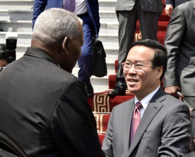 En tanto, Esteban Lazo trasladó al mandatario vietnamita un saludo entrañable, en nombre del Partido, el Estado, el Gobierno y el pueblo de Cuba; y en especial, del General de Ejército Raúl Castro Ruz y del Presidente Miguel Díaz Canel Bermúdez.
