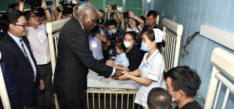 El titular del Parlamento cubano recorrió la sala de Pediatría, habló con pacientes, familiares y el personal de la Salud, incluso con una doctora cubana que labora en esta instalación, Annette Ramos Plascencia, natural del municipio Cotorro, en La Habana.