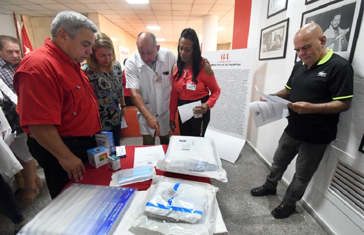 Con la presencia de Ulises Guilarte de Nacimiento, secretario general de la CTC y miembro del Buró Político del Partido Comunista de Cuba, se efectuó este lunes la entrega del envío a representantes de los hospitales General Calixto García, Clínico Quirúrgico 10 de octubre, Ortopédico Fructuoso Rodríguez, Hermanos Ameijeiras, Instituto de Cardiología y Cirugía Cardiovascular y el Complejo Científico Internacional Frank País.