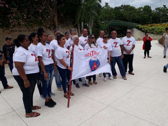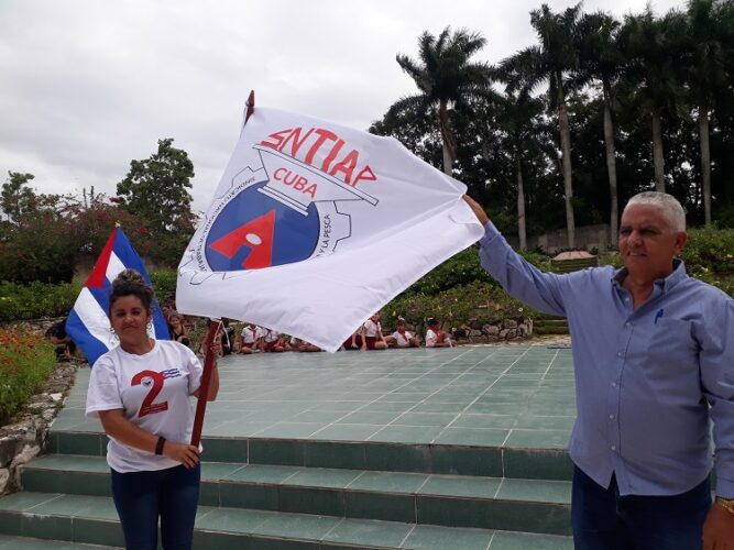 Jorge Luis Fajardo Casas, secretario general del SNTIAP, entregó el gallardete a Leyidis Sánchez Fariñas, secretaria de la organización sindical en el territorio, quien al recibir el estandarte explicó los compromisos de los participantes, entre ellos expuso aportar soluciones relacionadas con la producción de alimentos, impulsar la inventiva y la labor de la Asociación Nacional de Innovadores y Racionalizadores (ANIR), perfeccionar el modelo económico socialistas cubano, así como consolidar el funcionamiento sindical y la afiliación.