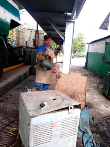 Eberto Núñez Velázquez hace 41 años que desempeña el oficio de soldador y del total 25 en la División Cupet-Las Tunas, “conozco bien los riesgos de este trabajo aquí, pero me siento seguro, incluso cuando estoy en el interior de las cisternas reparando algún salidero”, confiesa con firmeza.