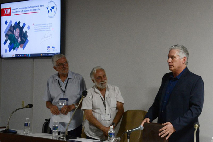 Miguel Díaz-Canel Bermúdez, Primer Secretario del Comité Central del Partido Comunista de Cuba y Presidente de la República, participa este jueves, en La Habana, en espacios de reflexión inscritos en el XIV Encuentro Internacional de Economistas sobre Globalización y Problemas del Desarrollo y dedicado al Día Internacional del Estudiante.