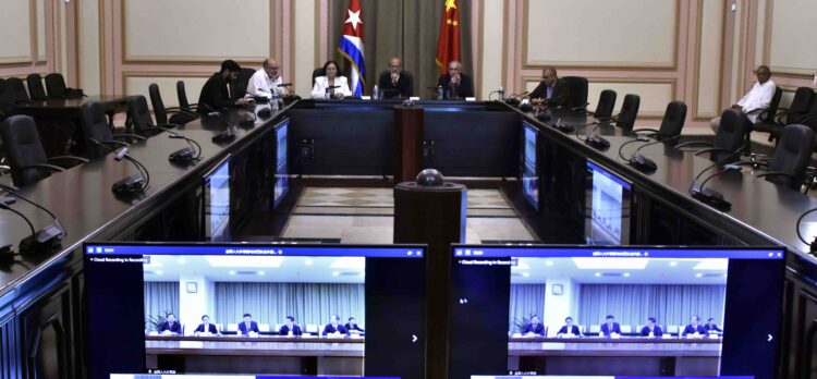El Presidente de la Comisión de Relaciones Internacionales de la Asamblea Nacional del Poder Popular, Rolando González Patricio, sostuvo en la noche de este lunes un fraternal y fructífero intercambio virtual con el titular del Comité de Asuntos Exteriores de la Asamblea Popular Nacional de la República Popular China, Lou Qinjian.