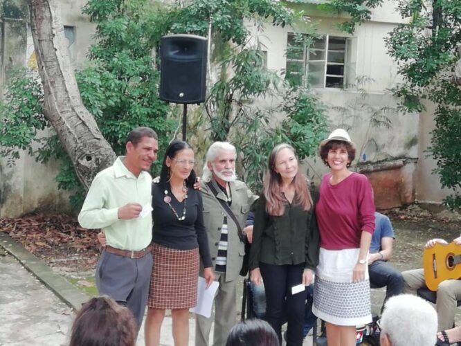 También se agradeció a los galardonados que pudieron venir desde sus respectivas provincias, sorteando innúmeras dificultades, por el único placer de participar de la ceremonia: Agustín Serrano desde Velasco, Holguín; Alejandro Muñoz, desde Camagüey; y Olga Lidia Martínez desde Guanajay, Artemisa. Esta última, en su condición de narradora oral escénica, ofreció su versión de un texto poético de Naborí. La ocasión fue oportuna además para entregar los carnés del Grupo Ala Décima a dos nuevos miembros de su Filial en San Miguel del Padrón: los poetas Elizabeth Lores y Ariel Brooks.