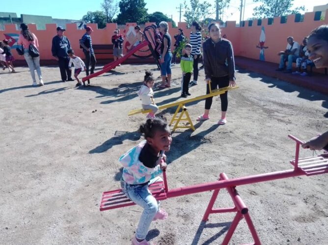 La instalación enclavada en la zona del sur de la capital espirituana, abrió al público este martes tras una reparación capital, donde fue creada un área con aparatos para el juego y una cancha para la práctica de deporte.