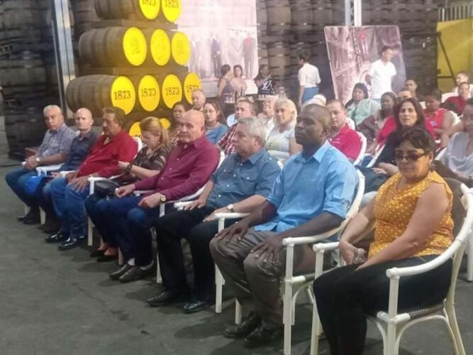 En presencia de Ulises Guilarte de Nacimiento, miembro del Buró Político del Partido y secretario general de la Central de Trabajadores de Cuba, se brindó con la bebida por la organización que celebra cumpleaños el próximo 28 de enero. El también diputado al Parlamento de la nación agradeció el gesto de Cuba Ron, mientras la maestra ronera Noemí del Toro explicó las características del elixir.