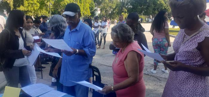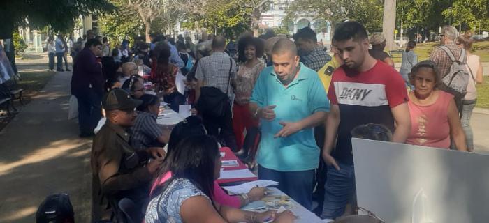 El parque Mariana Grajales estuvo muy concurrido en la mañana de este viernes: decenas de personas se movían entre las mesas de las entidades empleadoras que ofertaban plazas y cursos de adiestramiento a los interesados.