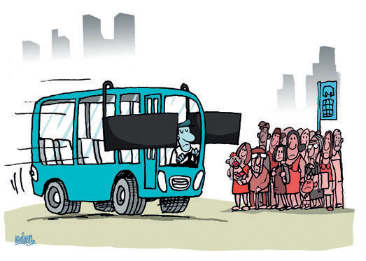 «…camino a mi hogar luego de la jornada laboral, veo parqueado frente a una empresa cercana el lote de ómnibus que traslada a sus trabajadores y me sentí dichoso. Pregunté si podía montar en la que transitaría por Diez de Octubre. “No socio, me dijo el chofer, es solo para los que trabajan aquí..» pero dígame Gabino, que empresa es (o son), y tendremos todas las respuestas. Yo si le puedo decir una cuyas siglas son BF, y son unas cuantas YUTONG azules, que tanto por la mañana como por la tarde pasan vacías sin recoger, hasta que llegan a los puntos oficiales. Igual sucede con buena parte de los TRANSMETROS, las amarillas del BPA y BANDEC, de AZUMAT, de la UCM, y así con una buena cantidad de empresas, que en vez de permitir la recaudación entre determinados destinos y aliviar el congestionado transporte publico, prefieren gastar combustible y viajar vacíos por más de 10 kilómetros. También hay choferes recalcitrantes, con razón o no, que plantean cuidar el ómnibus, pues el publico es maltratador de una propiedad que ni siquiera es suya… y pasan así con la misma cara de la caricatura, el corazón de piedra y encogido, ese, no es su problema..