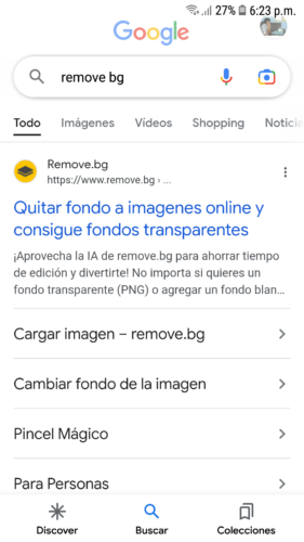 Para hacerlo, hay que tener acceso a Internet, entrar al navegador Google, y poner la opción de buscar, es decir, el rectángulo donde está la lupa, escribir: remove bg
