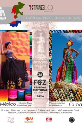 Los internacionalmente laureados diseñadores de modas Mariela Alemán Orozco y Mario Freixas representarán al Fondo Cubano de Bienes Culturales en el evento Fusión artesanal, Tejiendo culturas, que como parte de la 38 edición del Festival Cultural de la Paz Zacatecas 2024 se realizará en esa ciudad del centro de México el domingo 31 de marzo y el lunes primero de abril próximos.