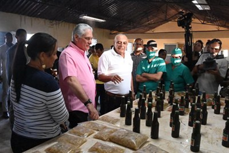 El Presidente cubano ponderó las potencialidades de la mini industria y les propuso ahondar en la economía circular, incluyendo el reciclaje de botellas para utilizarlas como envases, una práctica generalizada que existe en el país desde hace muchos años, y la ampliación de las ofertas, como los deshidratados, entre otras soluciones que incrementan valor agregado.
