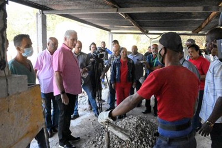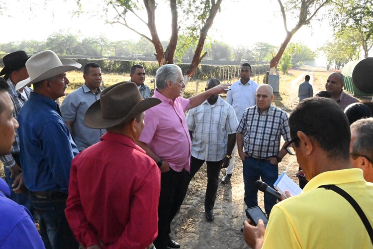 Díaz-Canel conversó con los trabajadores y los elogió por el empeño que ponen a pesar de lo duro de la faena. Y a los directivos les sugirió que si las empresas le siguen debiendo dinero, como la de Comercio, que no le vendan más, que gestionen la autorización de un punto de venta para la población y así eliminan intermediarios.