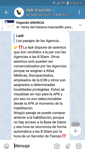 EN 500 CARACTERES: Aclaración de Viajando, tomada en Telegram