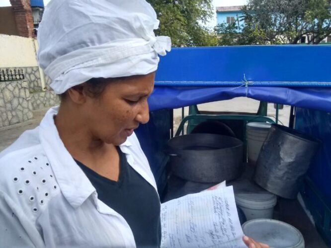 En la mañana, la Berti, como la llaman las asistentes, realiza sus labores como facturadora del almuerzo escolar en la Cocina Central, perteneciente a la Empresa Municipal de Comercio y Gastronomía de la Isla de la Juventud.