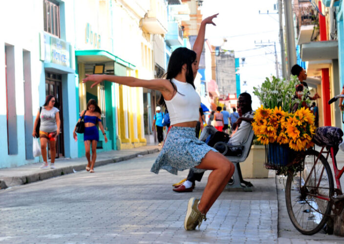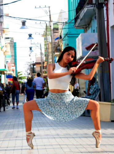 Este miércoles, algunas calles de la otrora Villa Santa María del Príncipe amanecieron diferentes, la joven bailarina Sheila Patricia, del Ballet de Camagüey, ofreció su arte a los transeúntes que observaron con asombro y admiración las perfectas y casi imposibles paradas y movimientos que realiza con su cuerpo.