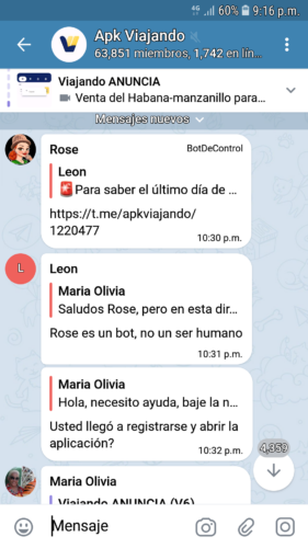 En Telegram hemos visto dirigirse a alguien y hasta querer discutir, en este caso en el canal de la APK Viajando, con Rose, que no es humana, sino un bot o programa informático que realiza automáticamente tareas reiterativas y simples.