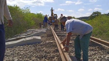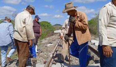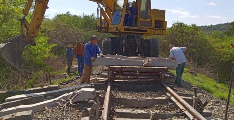 Los colectivos de vías y puentes y del EJT están desde el amanecer de este domingo en intensas labores para quitar las traviesas dañadas, colocar las nuevas con los correspondientes ajustes que conlleva el restablecimiento de la vía.