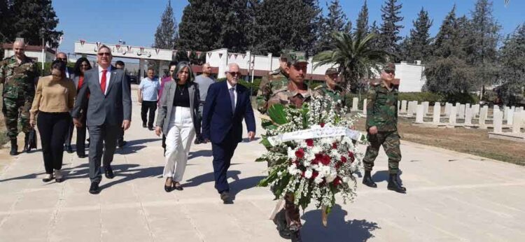También, visitaron la tumba del soldado cubano Eugenio Calvo Pérez quien cayó el 14 de mayo de 1974 en el suelo sirio durante la participación de una brigada de tanquistas internacionalistas en la guerra de liberación.