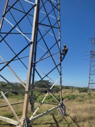 A 40 metros de alturas, con viento y sol que curten la piel, linieros de la unidad empresarial de base (UEB) Santiago de Cuba de la Empresa de Construcciones de la Industria Eléctrica (ECIE) desafían el peligro y asumen los riesgos de su labor.