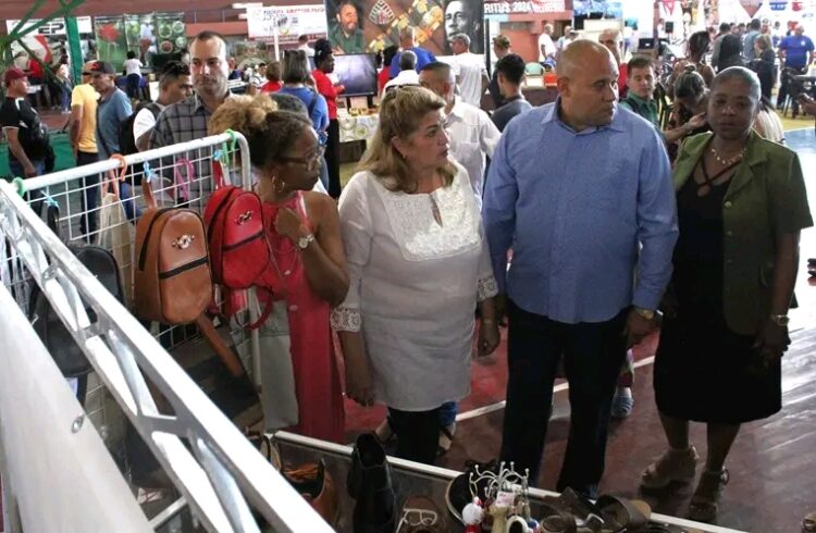 Deivy Pérez Martín, primera secretaria del Comité Provincial del Partido, y Alexis Lorente Jiménez, gobernador de Sancti Spíritus, cortaron la cinta inaugural y recorrieron el área expositiva.