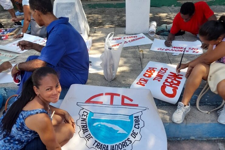 Yanet Pérez, member of the CTCCentral de Trabajadores de Cuba (CTC)The CTC (Workers' Central Union of Cuba) was founded on January 28, 1939 by Lázaro Peña under the name Confederación de Trabajadores de Cuba (Confederation of Cuban Workers) secretariat in Santiago de Cuba said that in the midst of shortages and limitations, inventiveness is also worth in order to give color to the rallies and the parade, «and no doubt, by the results we are seeing, there will be no shortage of posters with slogans related to the date that will be raised with the same hands that made them».