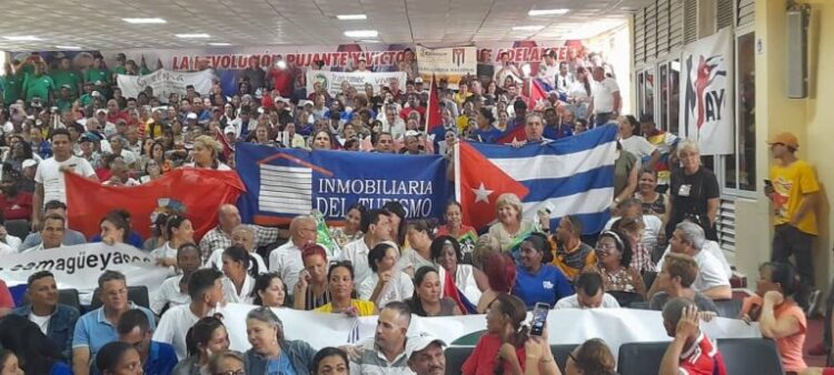 Congas, carteles e iniciativas de los centros de trabajo se presentaron en la plenaria organizada en la escuela Provincial del PCC en Camagüey por parte representantes de los 15 sindicatos y de colectivos laborales que mostraron algunas de esas ideas para el desfile por el Primero de Mayo, en la plaza de la Revolución Mayor General Ignacio Agramonte.