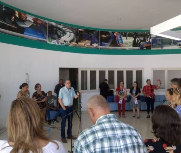 Se encontraban presentes en la ceremonia Yaquelín Baños Torres, secretaria general del Sindicato Nacional de Trabajadores de Industrias y Yamilín González Milian, viceministra primera del Ministerio de Industrias (Mindus), entre otros dirigentes.