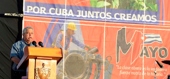 Desde esta plaza de históricas concentraciones y Marchas del pueblo combatiente, Ulises Guilarte de Nacimiento, secretario general de la Central de Trabajadores de Cuba e integrante del Buró Político del Partido, pronunció las palabras centrales de la conmemoración que también contó con la presencia de más de mil visitantes de 58 países y unas 220 organizaciones sindicales, grupos y brigadas de solidaridad que asisten invitados a los festejos.