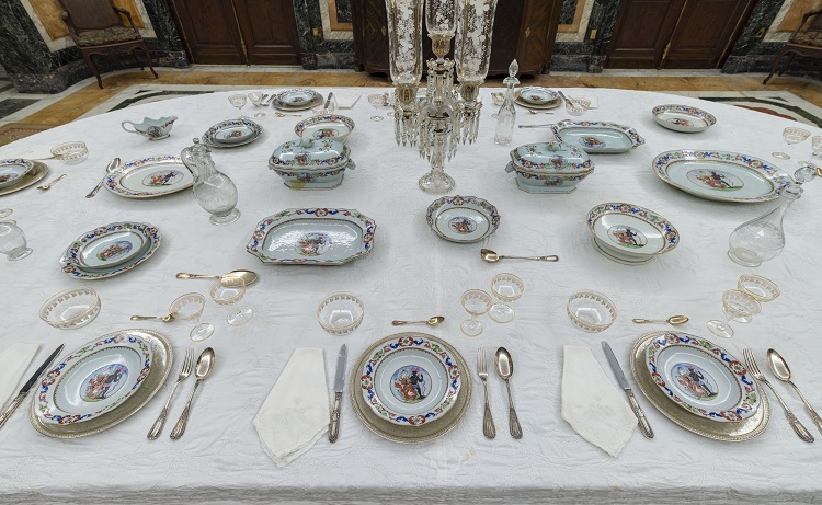 La exhibición consiste en una de las tantas vajillas adquirida por María Luisa Gómez Mena, Condesa viuda de Revilla de Camargo y una de las más significativas coleccionistas de artes en la primera mitad del siglo XX en Cuba. En sus incontables periplos por Europa adquirió importantísimas obras de arte que conforman la colección del MNDA y son, sin lugar a dudas, parte indispensable y excepcional del patrimonio cultural de la nación.