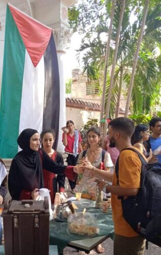 Mirtia Brossard Oris, jefa del Departamento de Relaciones Internacionales de la UJC, ratificaba “Todos somos Palestina desde el optimismo revolucionario de ese pueblo hermano, con fe en su victoria”, en tanto remarcaba la denuncia de la política de exterminio de Israel con la complicidad de Estados unidos.
