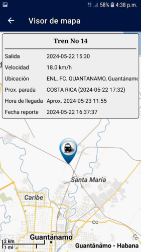 Si presionas el icono de tren podrá verse el recorrido del tren en un mapa.